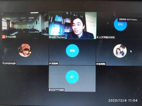 论坛上,参会学者结合自身学习经历和科研心得,分别做了主题报告。来自法国索邦大学的郭昱辰博士就虚构情绪来源的三种不同的解释做了分享。来自中国政法大学的闫强乐博士围绕陕派律学对关学思想的传承主题,条分缕析地总结出了陕派律学的源流和价值。来自中国人民大学的吴宁博士探讨了康德美学中无目的合目的性之涵义。来自陕西师范大学的刘雪娥博士的报告主题是“众声喧哗”的华文文学批评场,系统梳理了华文文学的特质。来自陕西师范大学的陈哓梅就音韵学的起源做了分享,回顾了国人认识自己语音的艰辛历程。五位青年学者代表做了主题报告后,线下参会的教师与线上报告人员就相关领域研究和参会者情况做了交流探讨,气氛亲切热烈。